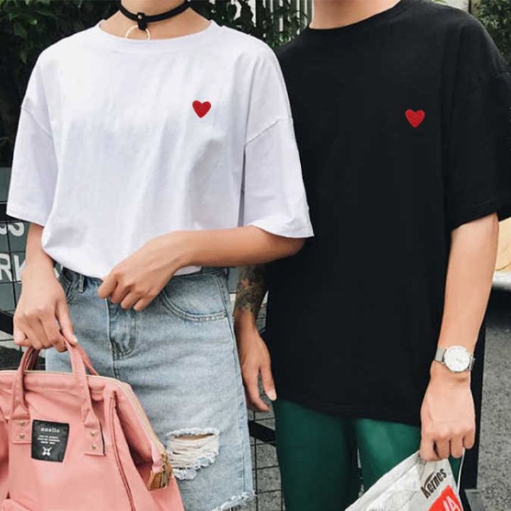 summer new love embroidery t-shirt couple vintage tshirt short sleeve streetwear black tee shirt clothes top aesthetics size y2k