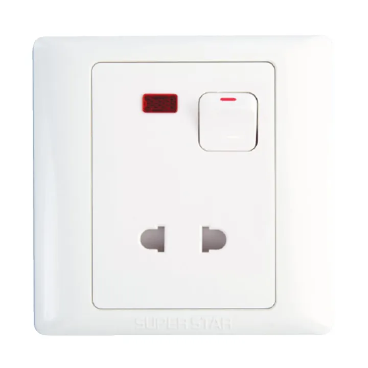 Super Star Lotus 10A 2 Pin Socket with Switch Neon Two 2Pin Electrical Wall Outlet Indicator