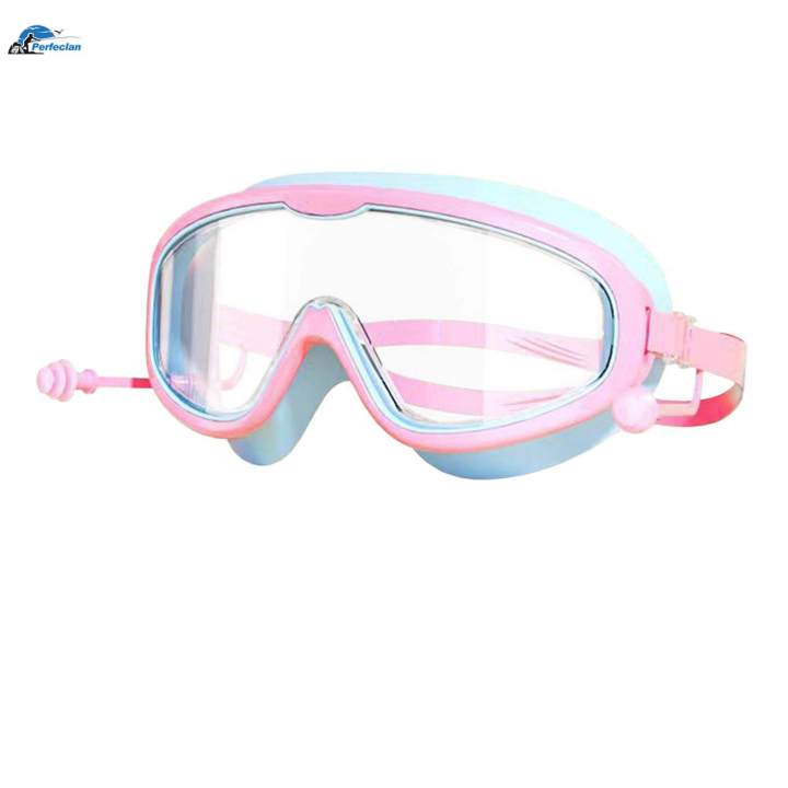 Swimming Goggles with Earplug Large Frame Professional Swim Goggles for Kids Pink Color Blue