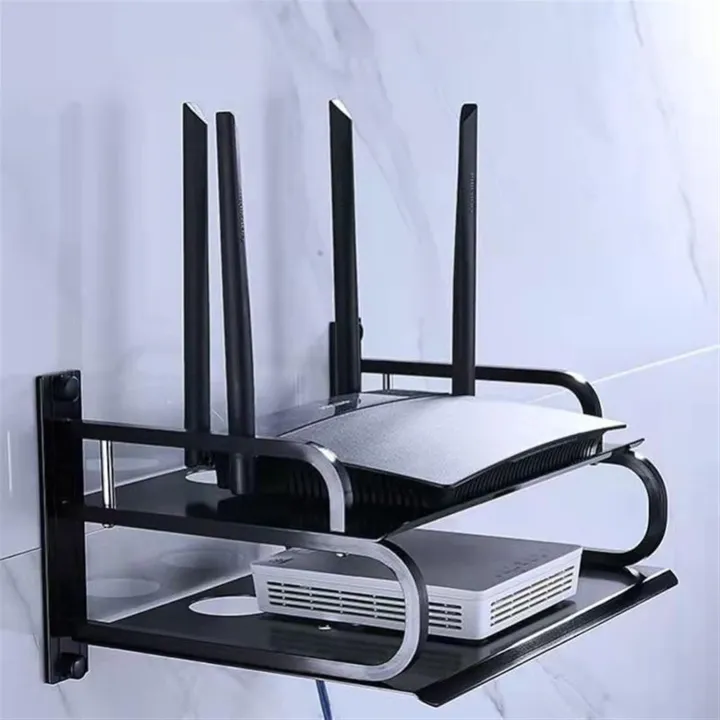 Telebrands As Seen on TV Wireless Router Storage Box, Black TV Set Top Box Rack Router Storage Rack Wall Tray Free Punch Wall Mount Router Efficient Holder Home Decoration