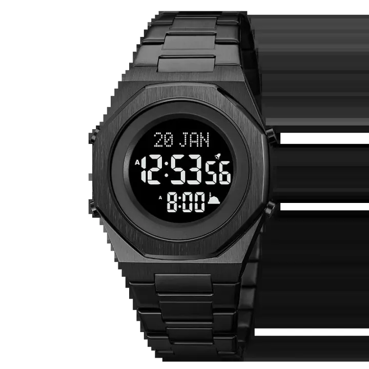 【The-Best】 2069 Digital Watch for Men Hijri Islamic Muslim Azan Clock for Prayer with Qibla Waterproof Wristwatch Mens Sports