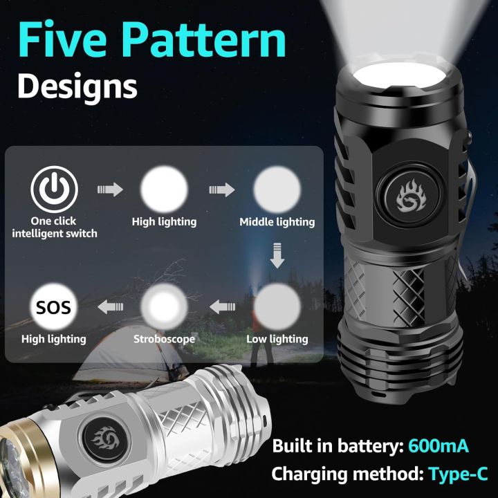 Three-Eyed Monster Mini Flash Super Power Flashlight, German Three-Eyed Monster Mini Flash Super Power Flashlight, Three-Eyed Monster Mini Flashlight, Portable Mini LED Flashlight - (Black)