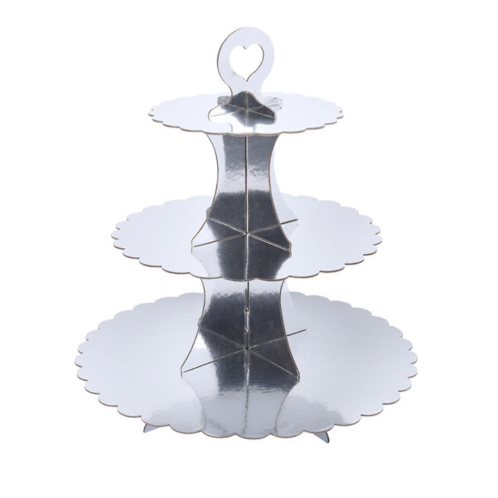 Three-Tiered Lace Paper Cake Stand Birthday Party Supplies Dessert Table Cake Decoration Color Cupcake Plate Stand