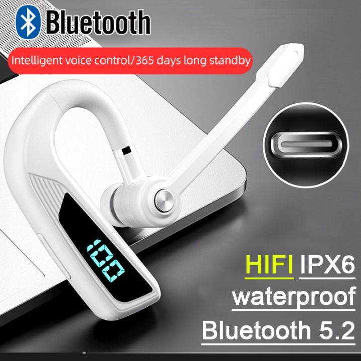 Tinzzi বিজনেস ওয়্যারলেস ব্লুটুথ 5.2 হেডসেট ব্যথাহীন একক কানের কানের-হুক ড্রাইভিং হেডফোন লম্বা স্ট্যান্ডবাই ইয়ারবাড নয়েস ক্যান্সেলিং স্পোর্ট ইয়ারফোন সাথে মাইক led ডিসপ্লে