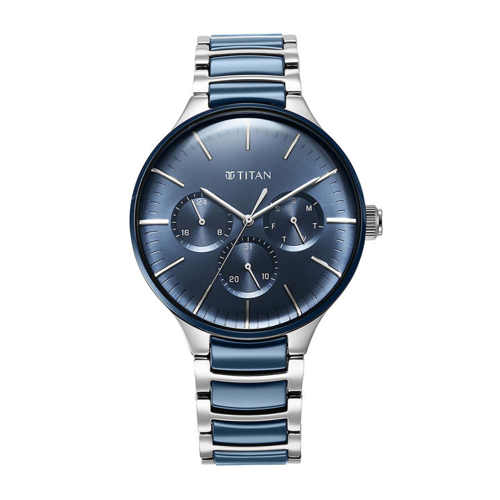 Titan 90148KD02 Blue Ceramic Fusion Blue Dial Multifunction Watch