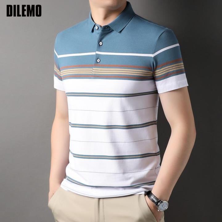Top Grade Yarn-dyed Process Cotton Luxury Stripped Summer Casual Polo Shirt For Men Logo Short Sleeve Tops Fashions Men Clothing