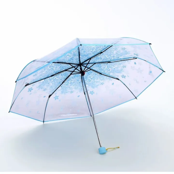 Transparent Flower Design Folding Fashion Umbrella for Women - Compact and Waterproof