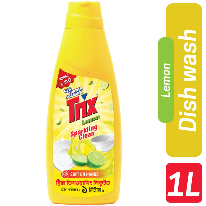 Trix Dishwashing Liquid 1L Bottle Lemon Fragrance for Scratch-Free Sparkling Clean Dishes, removes grease stains with power-rich thick foam