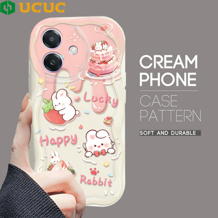 UCUC for OPPO A3X 4G 5G Back Cover Cute Penguin Cream Texture Wavy Edge Soft Silicone Phone Case