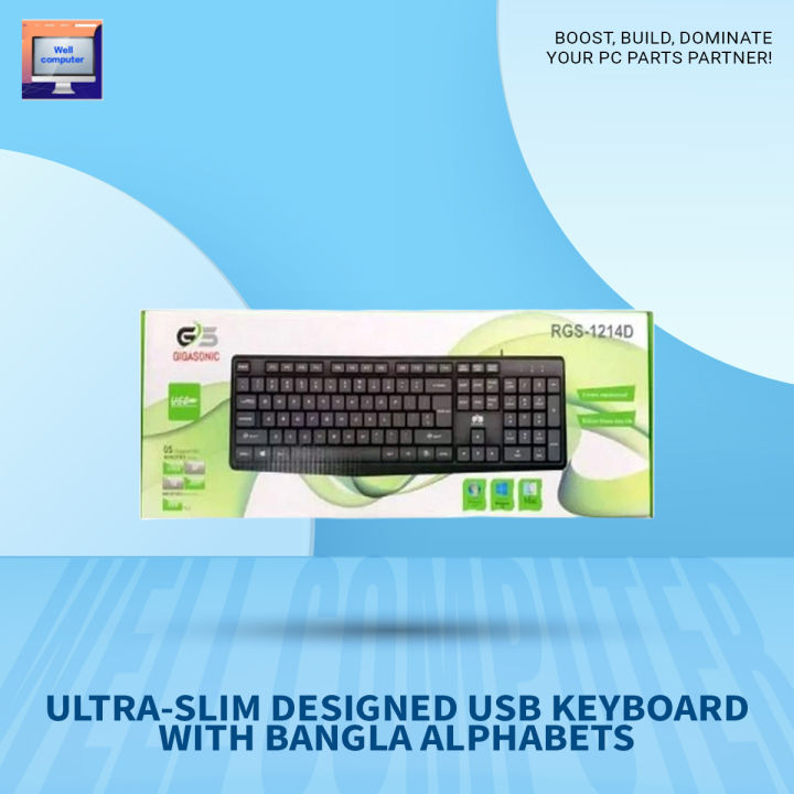 Ultra-Slim Designed Usb Keyboard With Bangla Alphabets - Sleek And Functional Keyboard For Desktop Use