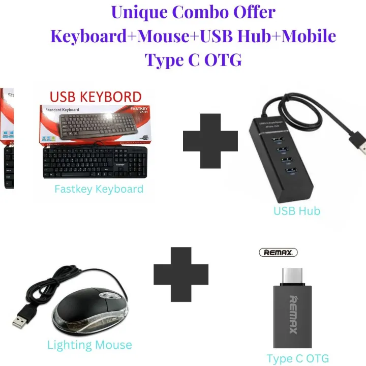 Unique Combo Offer Keyboard + Mouse + Usb Hub + Mobile Type C Otg - Complete Solution To Your Connectivity Needs Perfect For On-The-Go Users