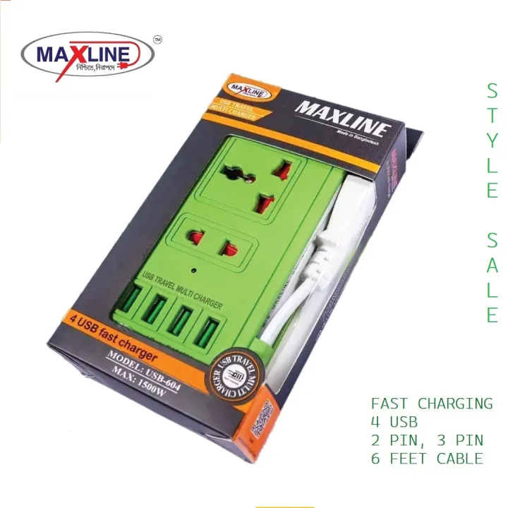 Universal Travel PLUG with Fast Charging Multiplug with 4 USB Port and 5 Pin Socket and 6 Feet Long Cable- Multicolor