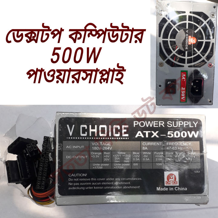 V CHOICE 500W Desktop PC Power Supply: Reliable and Efficient Power Solution for Your PC Setup-a Unique Choice For Your Needs