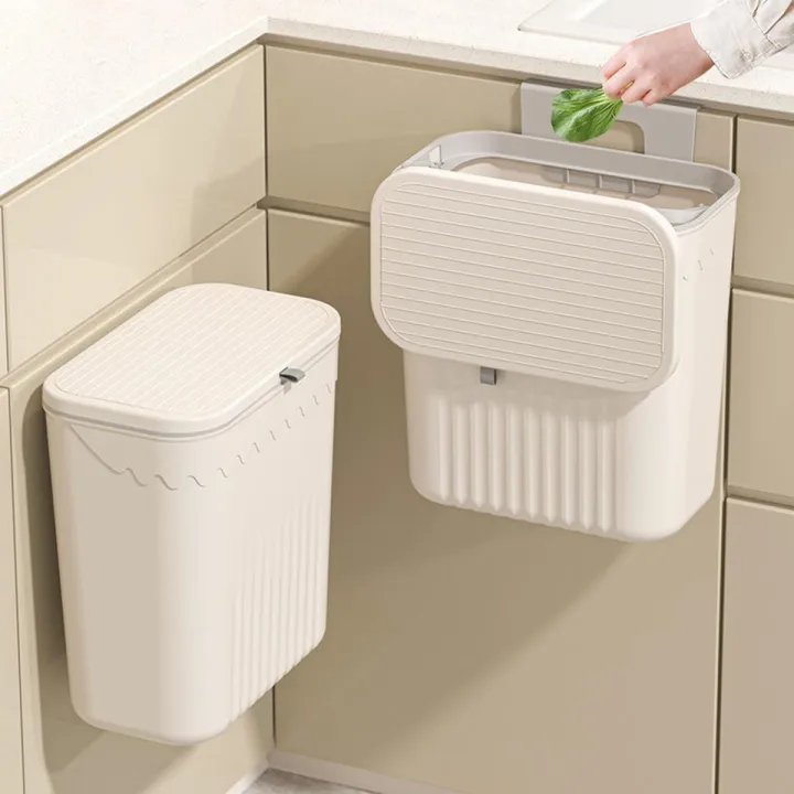 Wall Mounted Trash Can Kitchen Hanging Trash Bin Cabinet Door Bathroom Trash Can With Lid Garbage Bin Counter Bins Dustbin