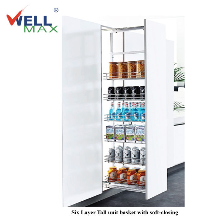 WellMax KDSPTJ012D Stainless Steel Heighten pull-out basket with soft-closing Tall unit basket