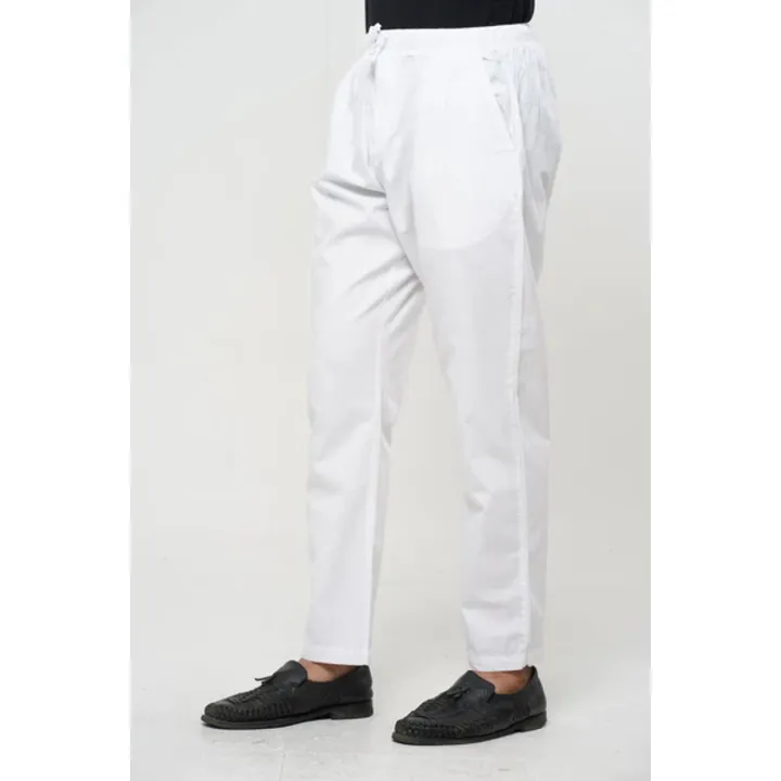 White Cotton Narrow Fit Stitch Standard Pant Cut Pajama for Men