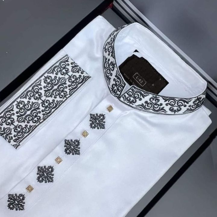 White Men'S Premium Quality Semi Long Embroidery Work Panjabi ( Tencil Cotton ) - Panjabi
