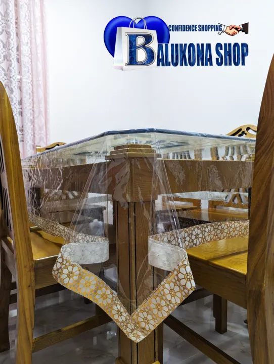 White Plastic Dining Table Cloth Cover With Border Design - Add A Touch Of Elegance To Your Dining Setup With This Stylish Table Cloth Cover