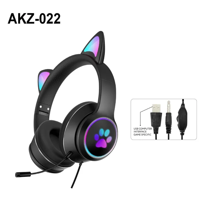 Wired Cat Ear Head-mounted Headset LED Lighting Cute Girl Gaming Headphones professional design
