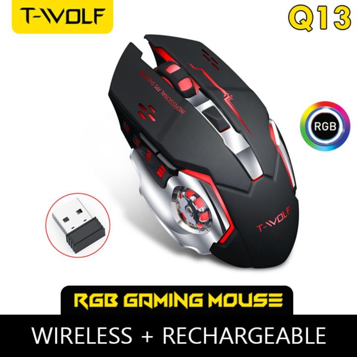 Wireless Mouse With RGB Light Rechargeable Wireless Gaming Mouse T-Wolf Q13 Computer Mouse Laptop PC OTG Gaming Design Modern Wireless Mouse In BD