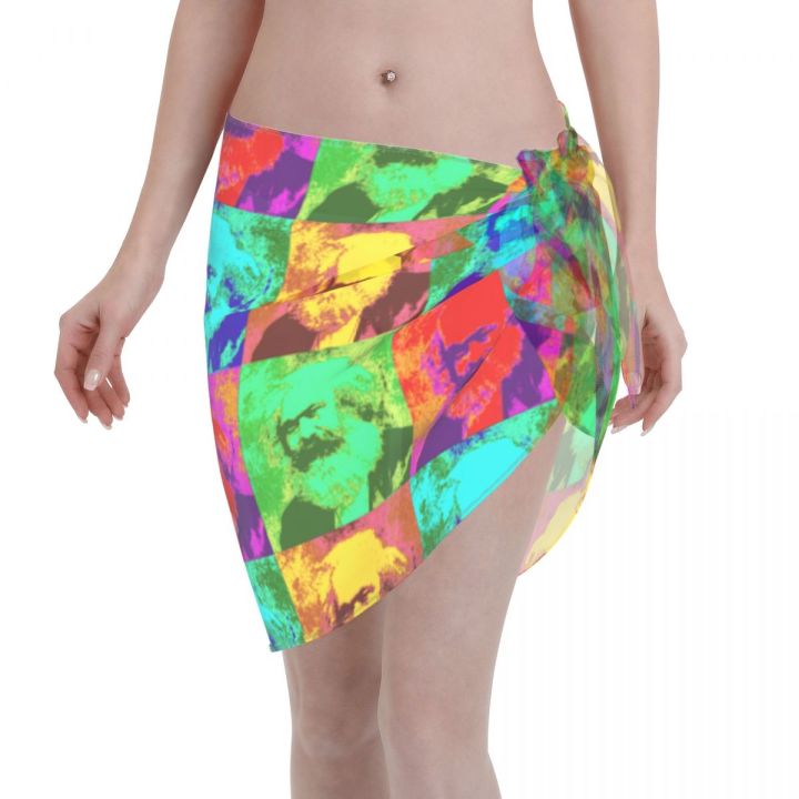 Women Chiffon Pareo Scarf Karl Marx Pop Art Communist Beach Cover Up Wrap Kaftan Sarong Skirts Politics Swimsuit Bikini Cover Up