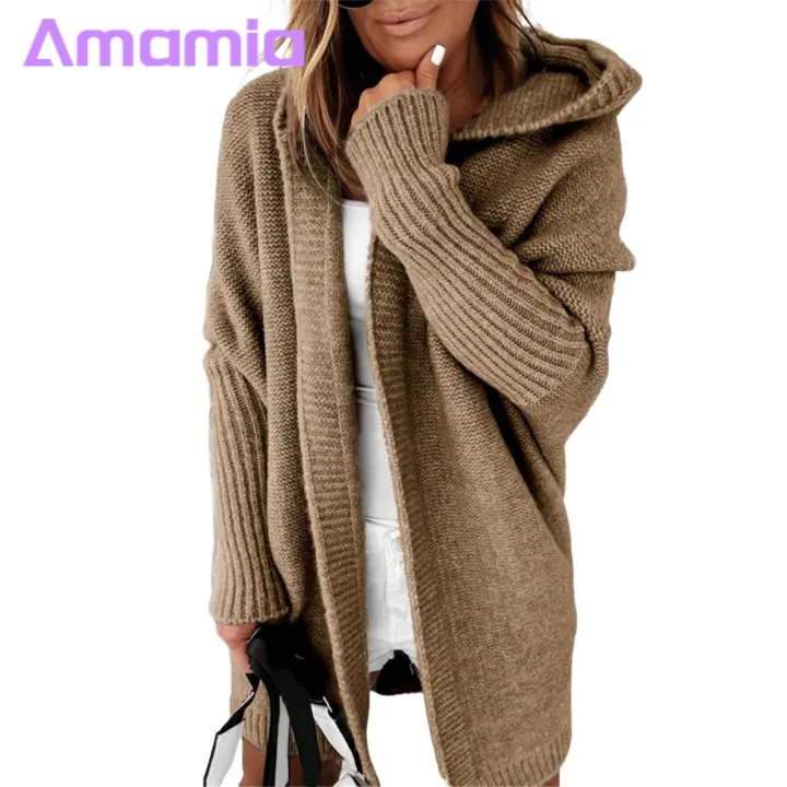 Women Jket Stylish Hooded Sweater Coat for Women Long Sleeve Knit Cardigan with Ribbed Cuffs Open Front Solid Colord-length Outerwear Women Knitted Cardigan Jket