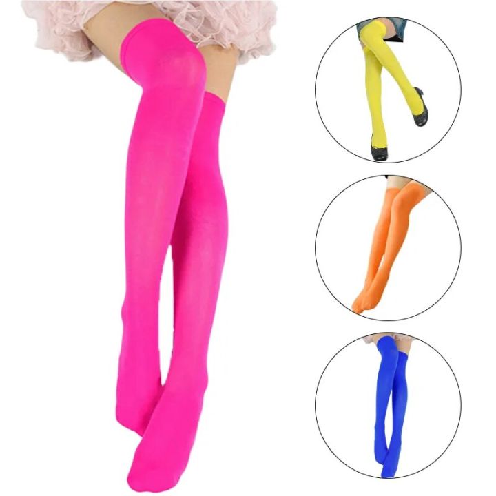 Women Neon Stockings Party Wear High Knee Socks Cosplay Nylon Silk Elasticity Black White Stockings Women Long Socks