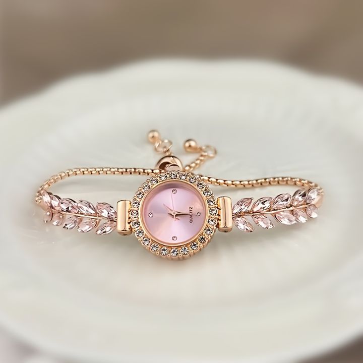 Women's Watch Luxury Rhinestone Quartz Watch Elegant Fashion Analog Adjustable Bracelet Wrist Watch