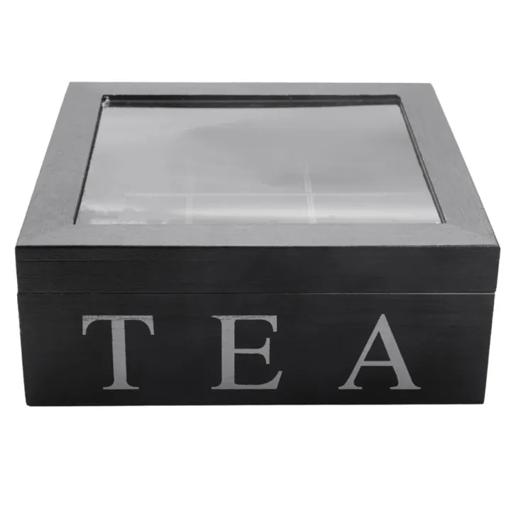 Wooden 9 Grids Tea Box Tea Bags Container Storage Box Square Gift Box Case Transparent Top Lid Jewelry Storage Box