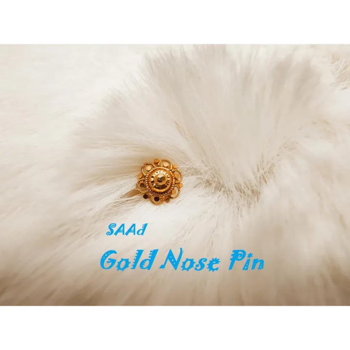 Yellow Gold 18 Karat Golden Nose Pin For Women And Girl. piercing nose ring Push Pin. Nose Pin. Anniversary, engagement, gift, party, wedding. Model:Dk400F-Flower.