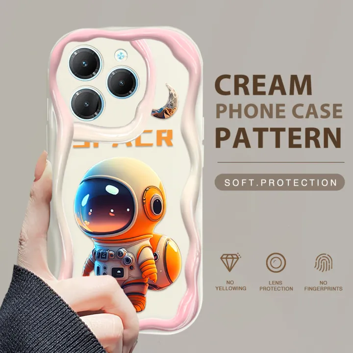YYDS for Infinix Hot 40 Hot 40 Pro Back Cover Colorful Astronauts Case Cream Texture Wavy Edge Soft Silicone Mobile Cover