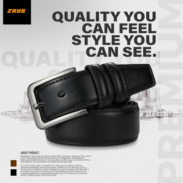 Zays Men’s Full-Grain Leather Belt – Premium Cowhide, Durable, Anti-Crack, Hand-Stitched, Sweat-Resistant, Cut-to-Fit, Suitable for Office Wear, Jeans, Blazer, Traditional Dress, Luxury Box Included for Any Occasional Gift